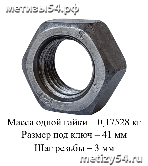 Вес одной гайки М27 ГОСТ 5915-70, ГОСТ 5927-70, ГОСТ Р ИСО 4032-2014, DIN 934 равен 0,17528 кг.