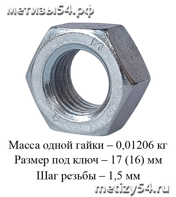Вес одной гайки М10 ГОСТ 5915-70, ГОСТ 5927-70, ГОСТ Р ИСО 4032-2014, DIN 934 равен 0,01206 кг.